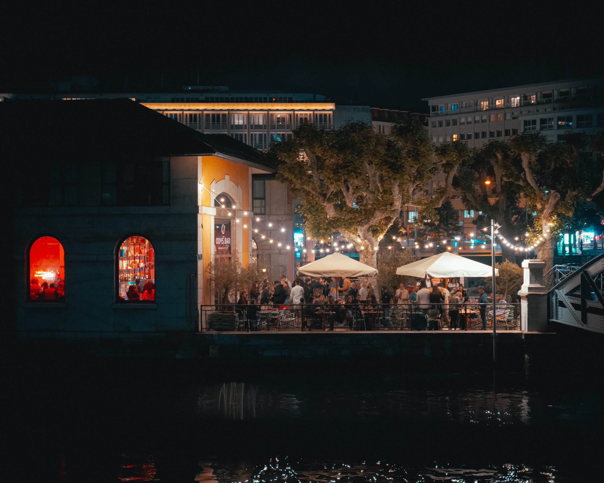 ODYS Bar accueille vos afterworks, célébrations d’équipe, lancements de projet ou soirées d’entreprise dans un cadre vibrant au cœur de Genève. Terrasse spacieuse, bar intérieur de caractère et, en coulisses, une cuisine festive transformée en mini club confidentiel pour prolonger l’instant. Privatisation partielle ou totale, format assis ou debout, en journée ou en soirée : nous nous adaptons avec style. Notre équipe vous accompagne de A à Z avec attention et réactivité. Donnez à votre événement du fond, du feu et du relief. Faites-le vivre chez ODYS Bar.
